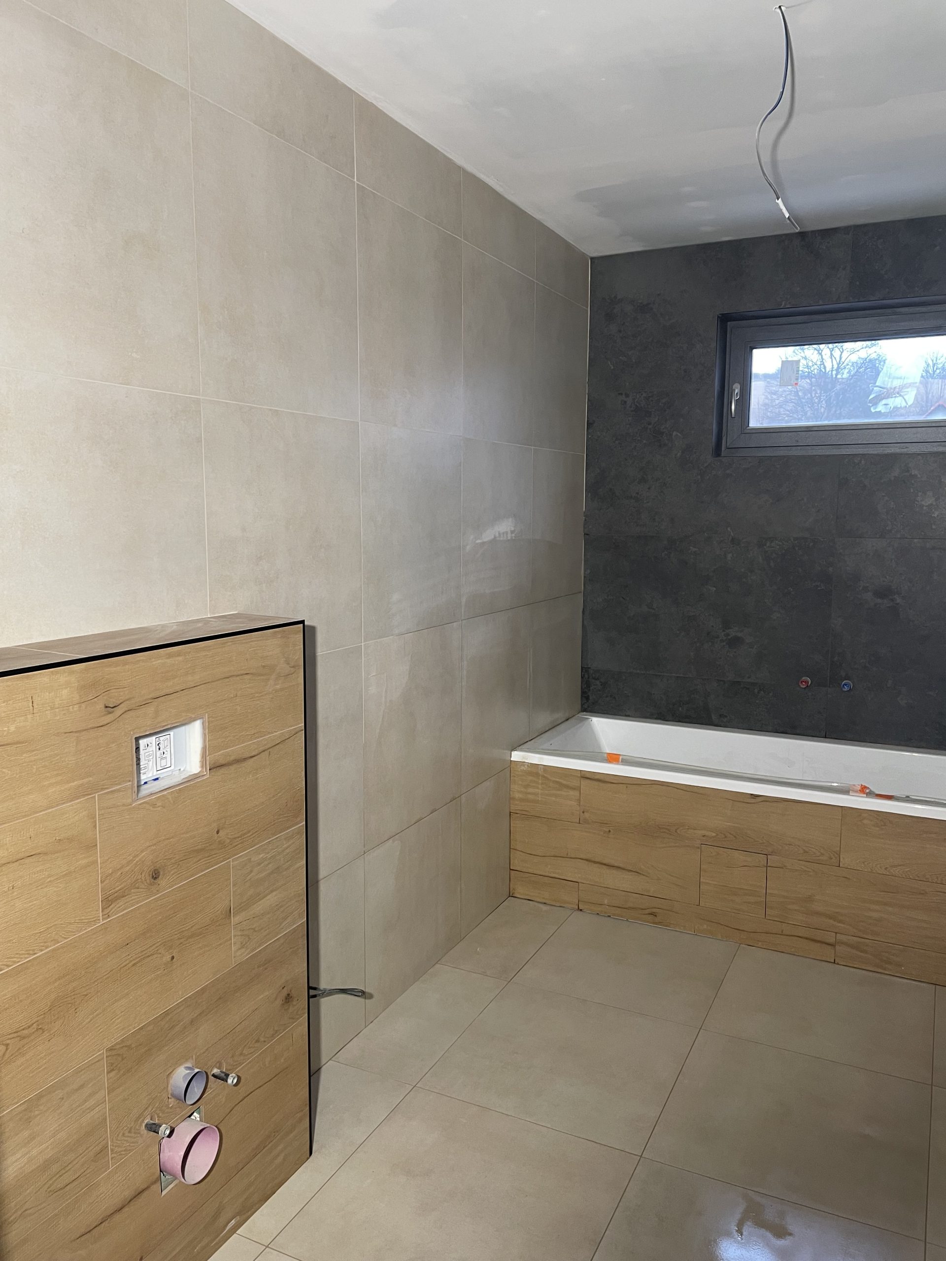 - Obklady a dlažby – pokládáme obklady do koupelen, kuchyní, podlahy i venkovní dlažby.